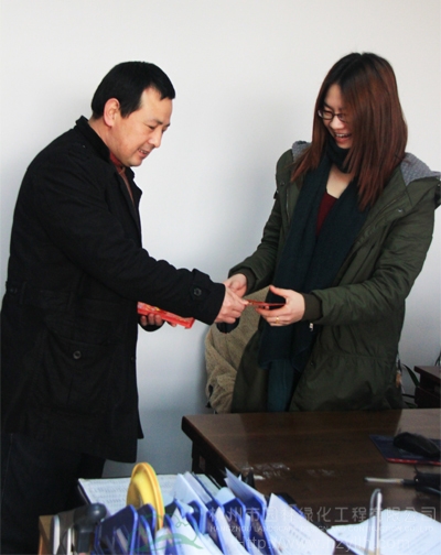 9点之后,董事长吴光洪携同总经理张炎良、常务副总李寿仁来到各个办公室向大家拜年,并为每位员工发放了红包。热情洋溢的新年问候,真挚温暖的祝福话语,新年的喜庆氛围在公司处处传递。